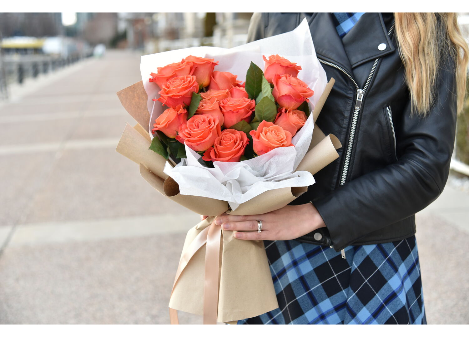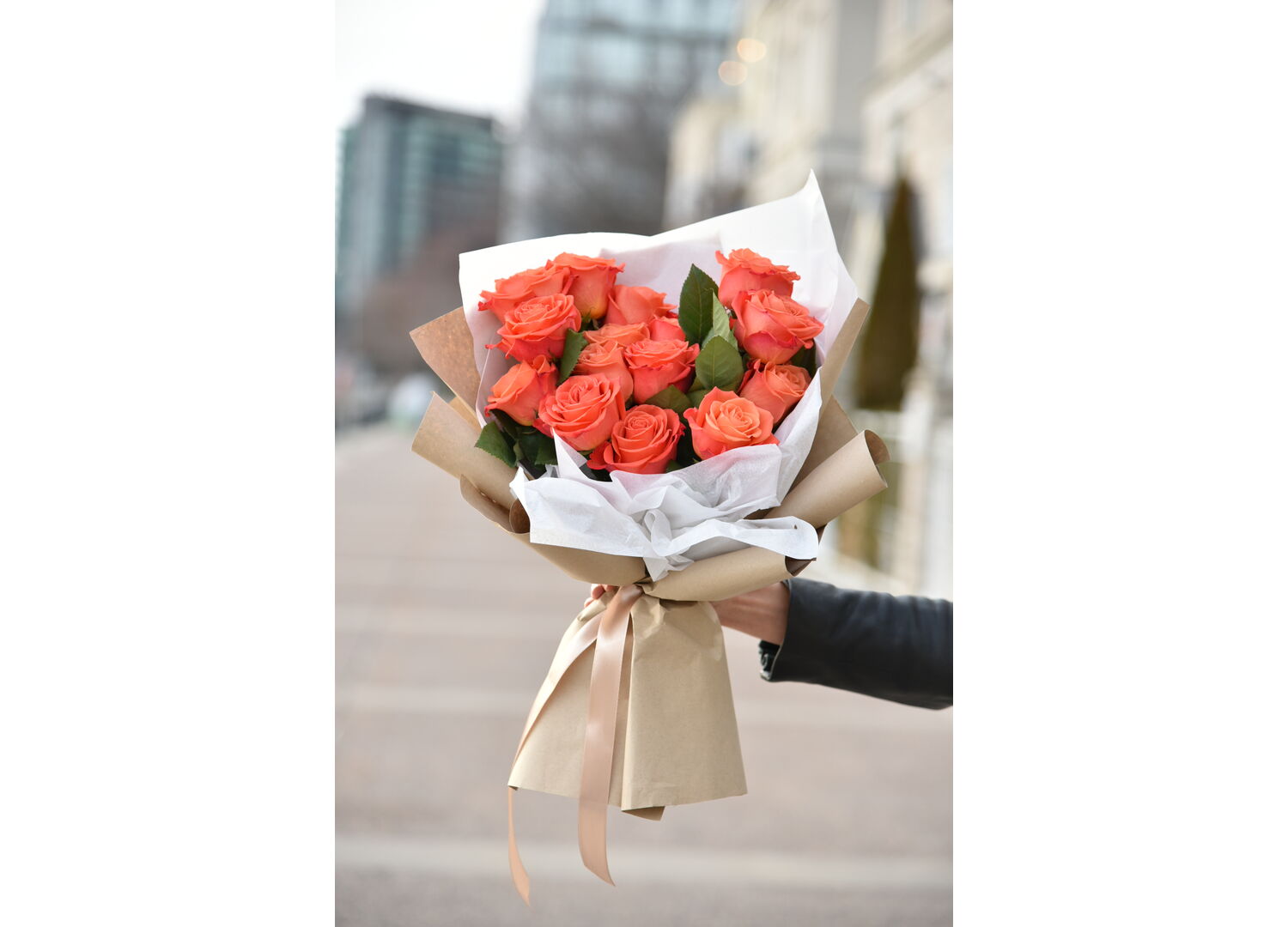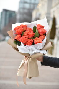 Stunning heart-shaped rose bouquet in trendy and sustainable craft and tissue wrapping is the best choice for special occasion such as proposal, anniversary or Valentine's Day. The flowers will say it better than words can.